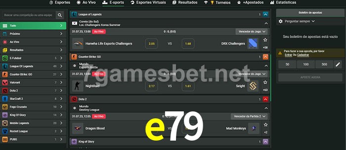O e79 oferece uma grande seleção de opções de apostas em e-sports com probabilidades competitivas